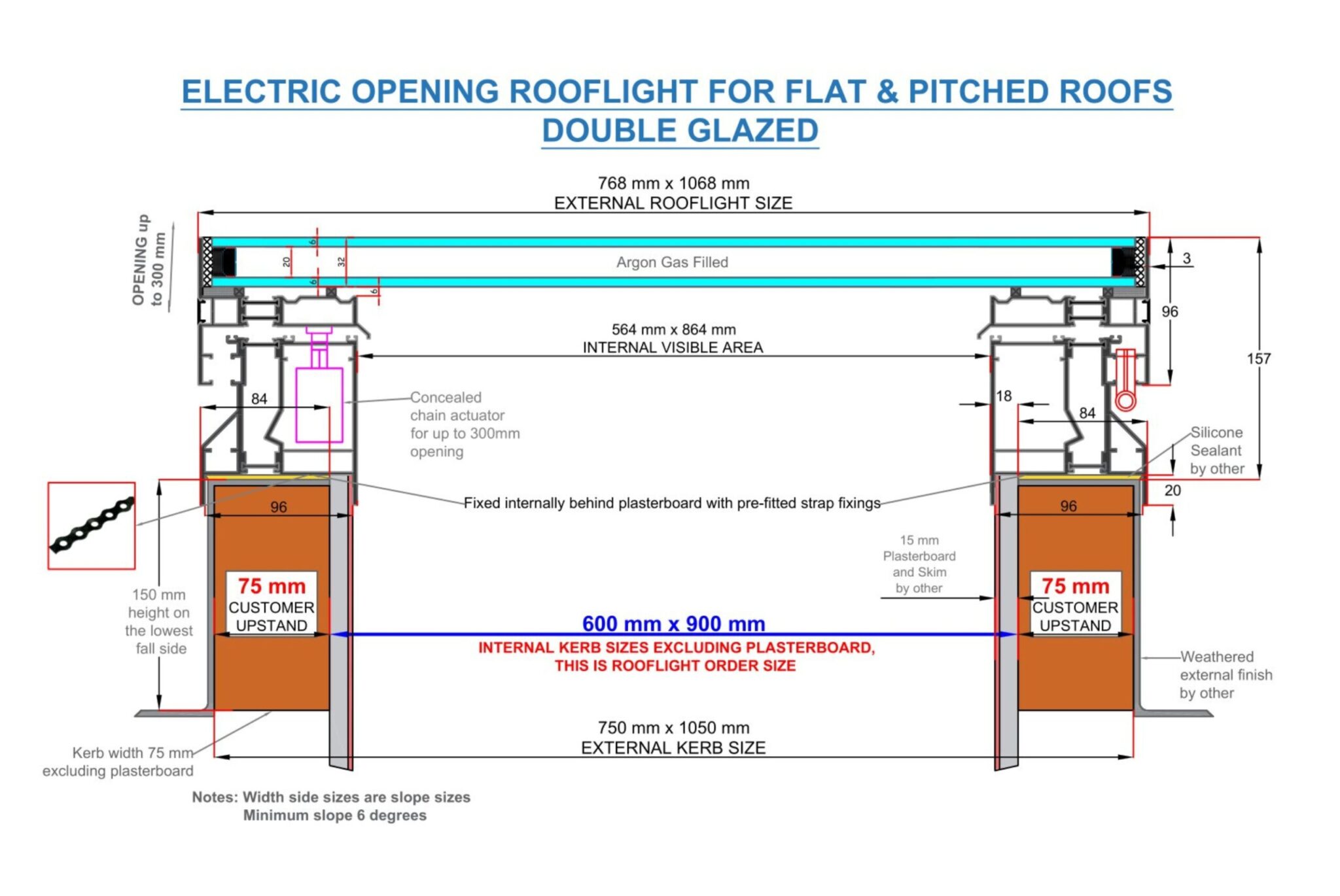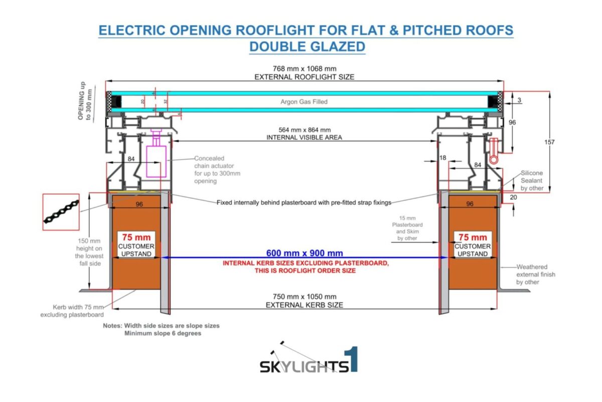Skylights1 elektriska takfönster är dubbelglasat i klart härdat glas för säkerhet och sinnesro.