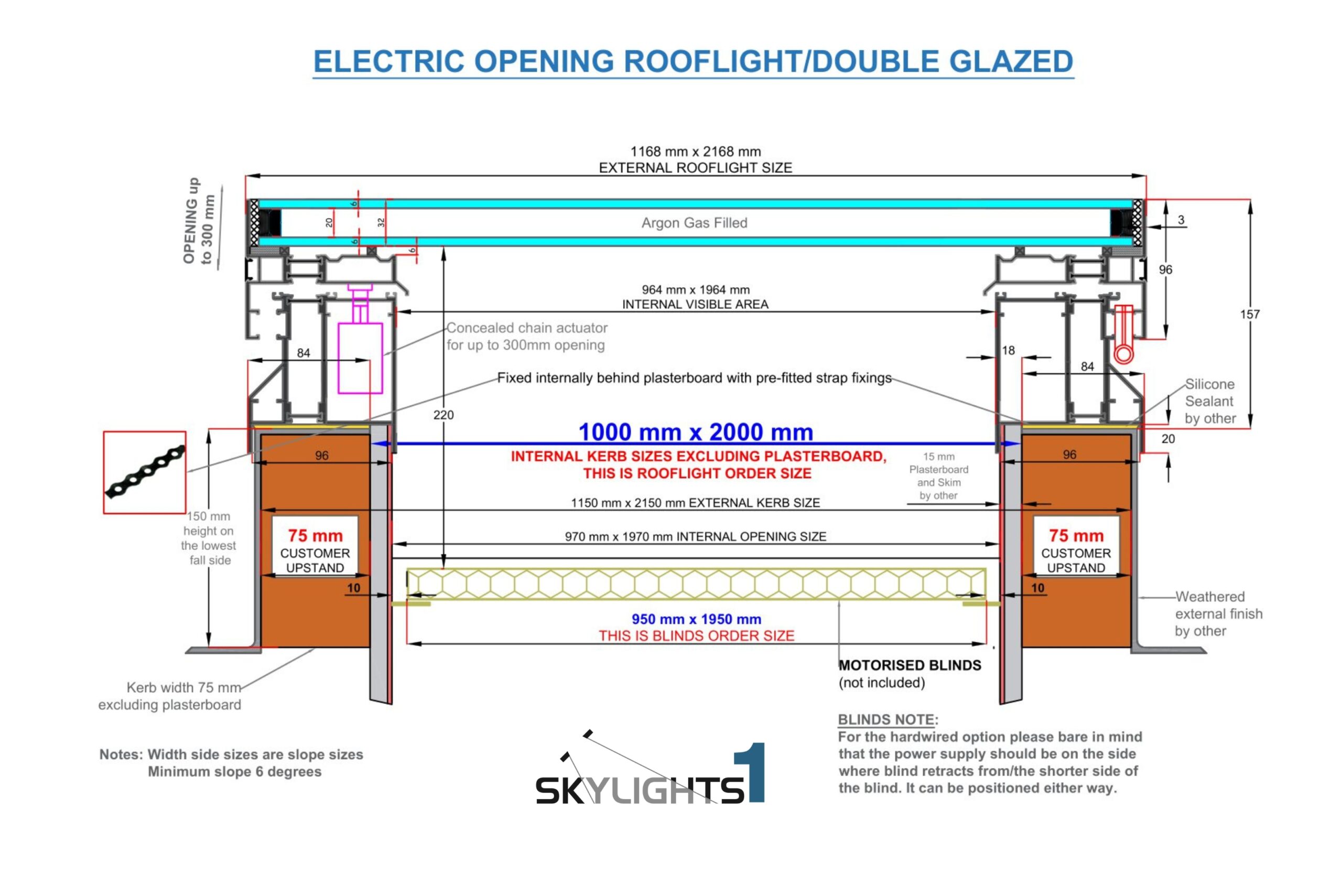 Skylights1 elektriska takfönster är dubbelglasat i klart härdat glas för säkerhet och sinnesro.
