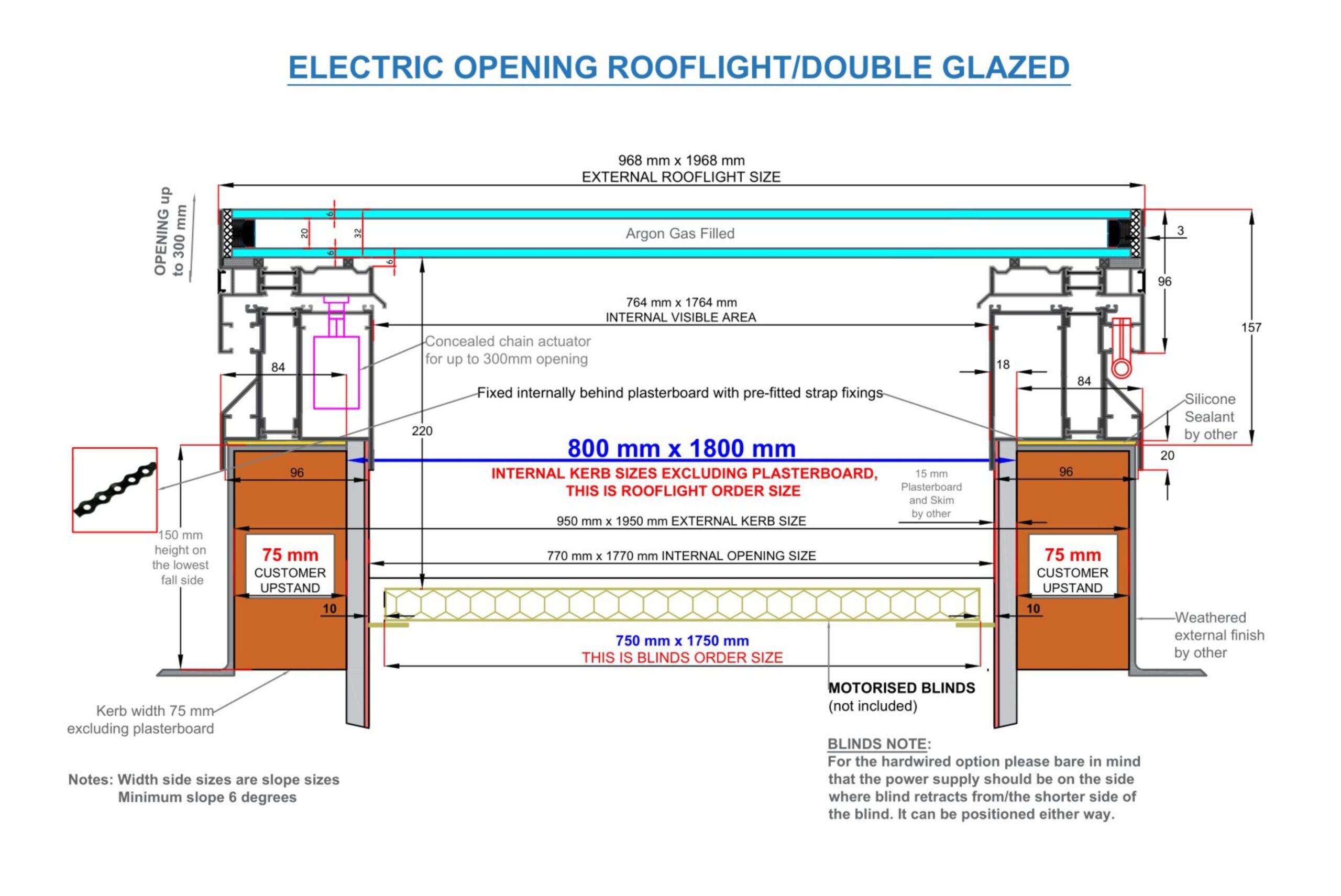 Skylights1 elektriska takfönster är dubbelglasat i klart härdat glas för säkerhet och sinnesro.